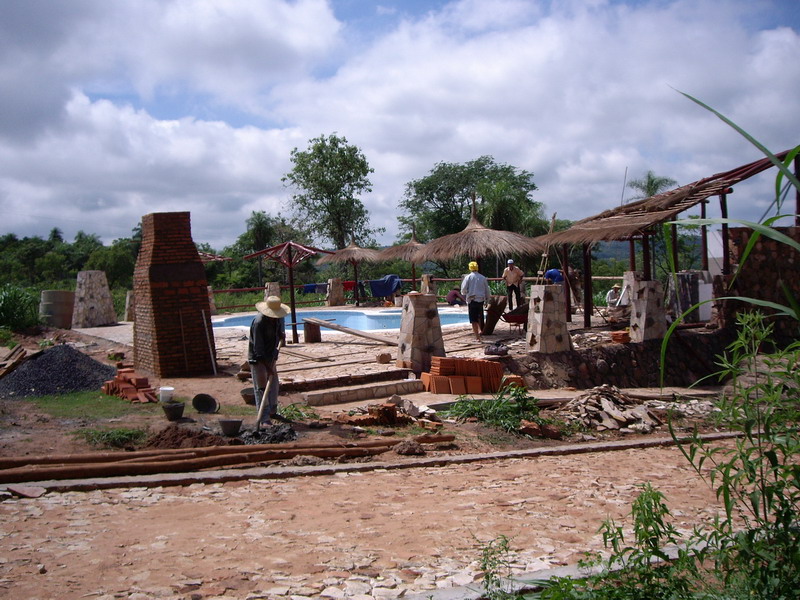 Die 4 Gästehäuser sind seit einigen Wochen bezugsfertig und wir konnten schon die ersten Gäste beherbergen. Sie sind für jeweils zwei Personen konzipiert und jedes der Häuser ist mit einer Küche ausgestattet. Wer möchte kann sich somit selbst versorgen oder sich an unserem Pool-Quincho (Pool-Bar) verköstigen lassen. Vergangene Woche wurden die Umlagen gepflanzt und wir hoffen, dass der „Tropische Garten“ schnell wächst.